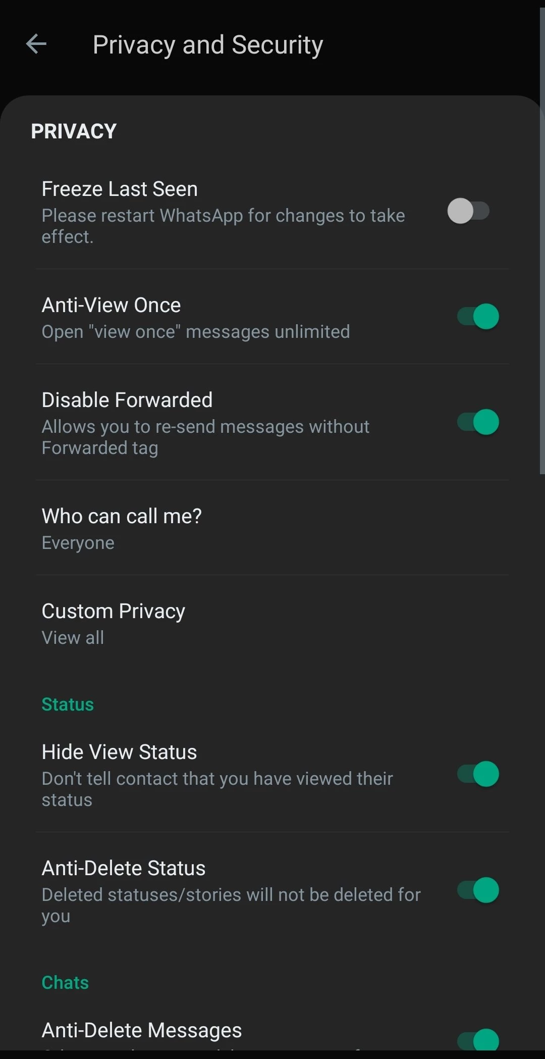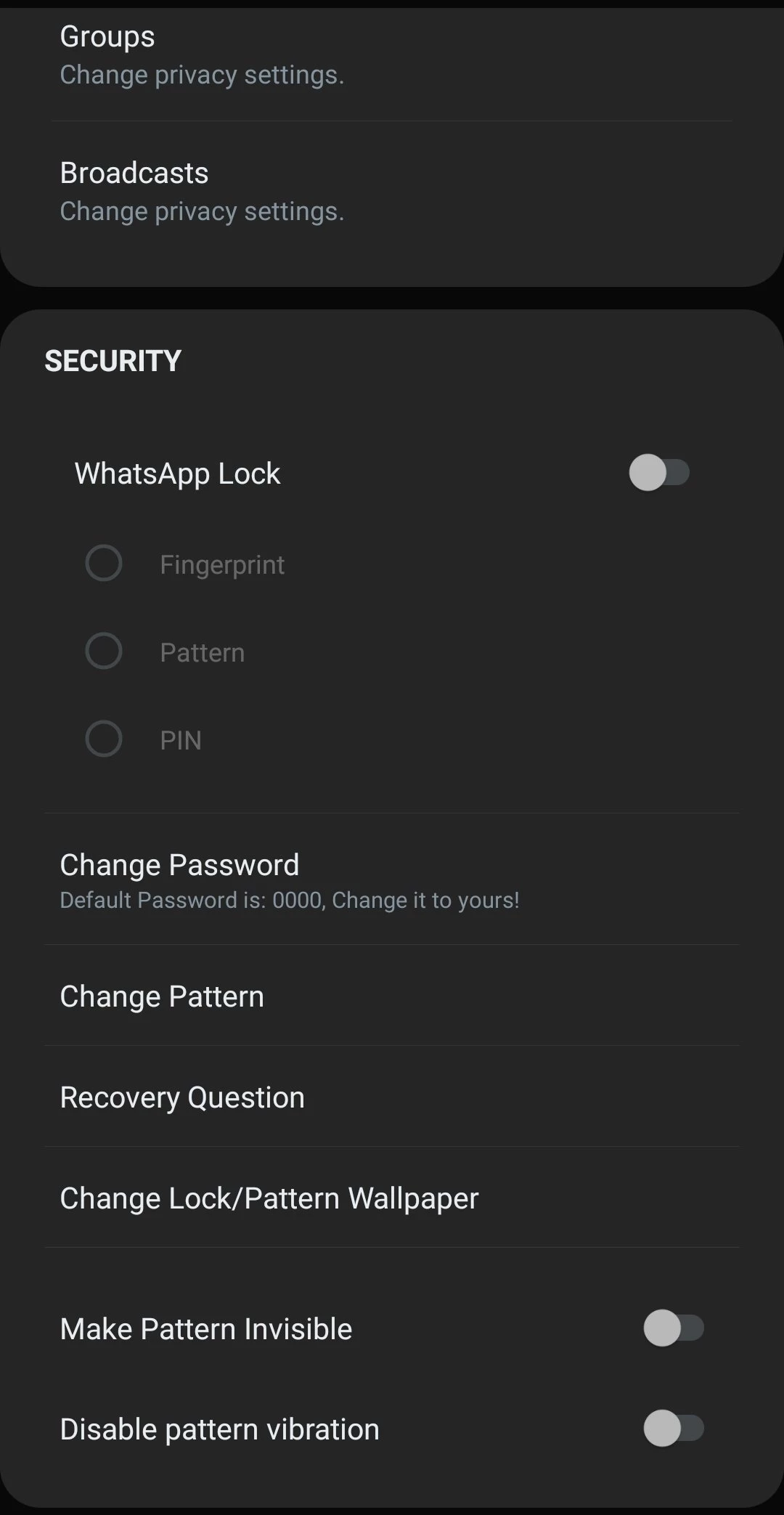 Forse le funzionalità di privacysono la ragione fondamentale per la creazione di più modalità per Whatsapp, poiché gli utenti chiedono un po' di più di quanto Whatsappfornisse. Qui troverete più opzioni come: